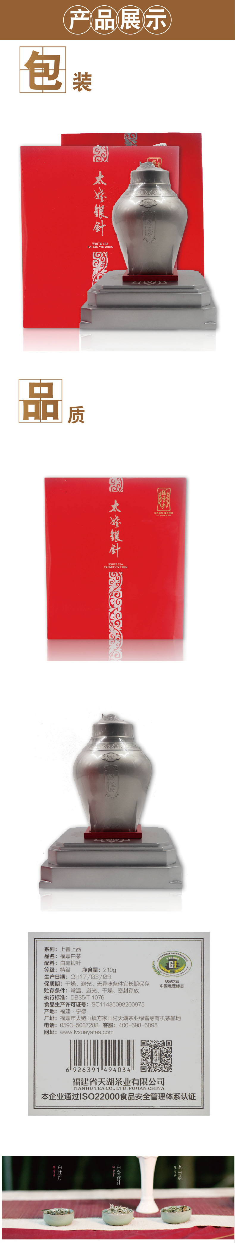 » 绿雪芽茶叶福鼎白茶特级白毫银针上善上品太姥银针锡罐210g