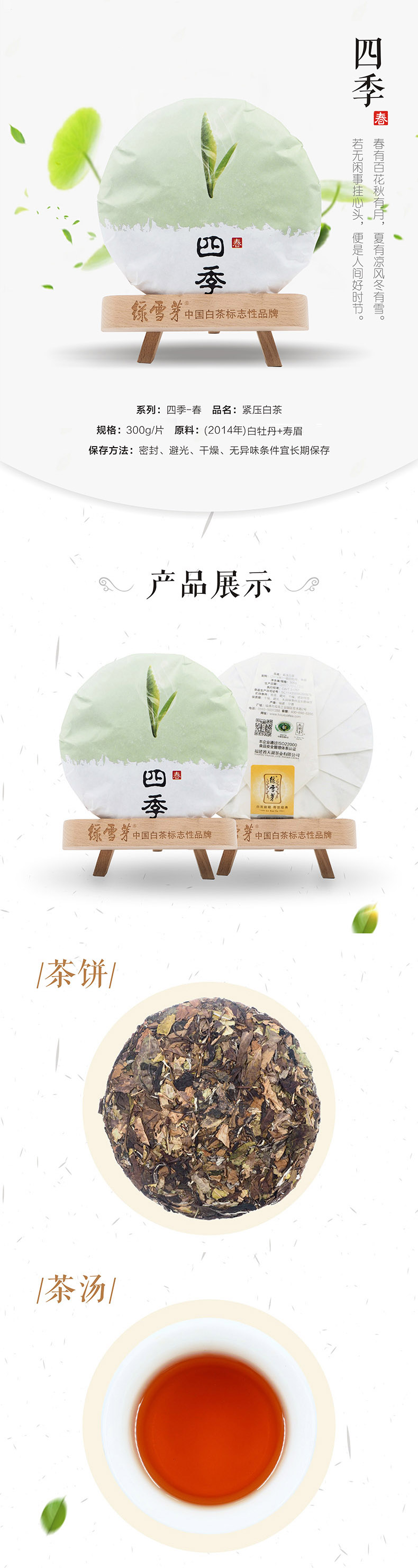 绿雪芽茶叶福鼎白茶饼老白茶白牡丹寿眉福建正宗白茶茶叶礼盒